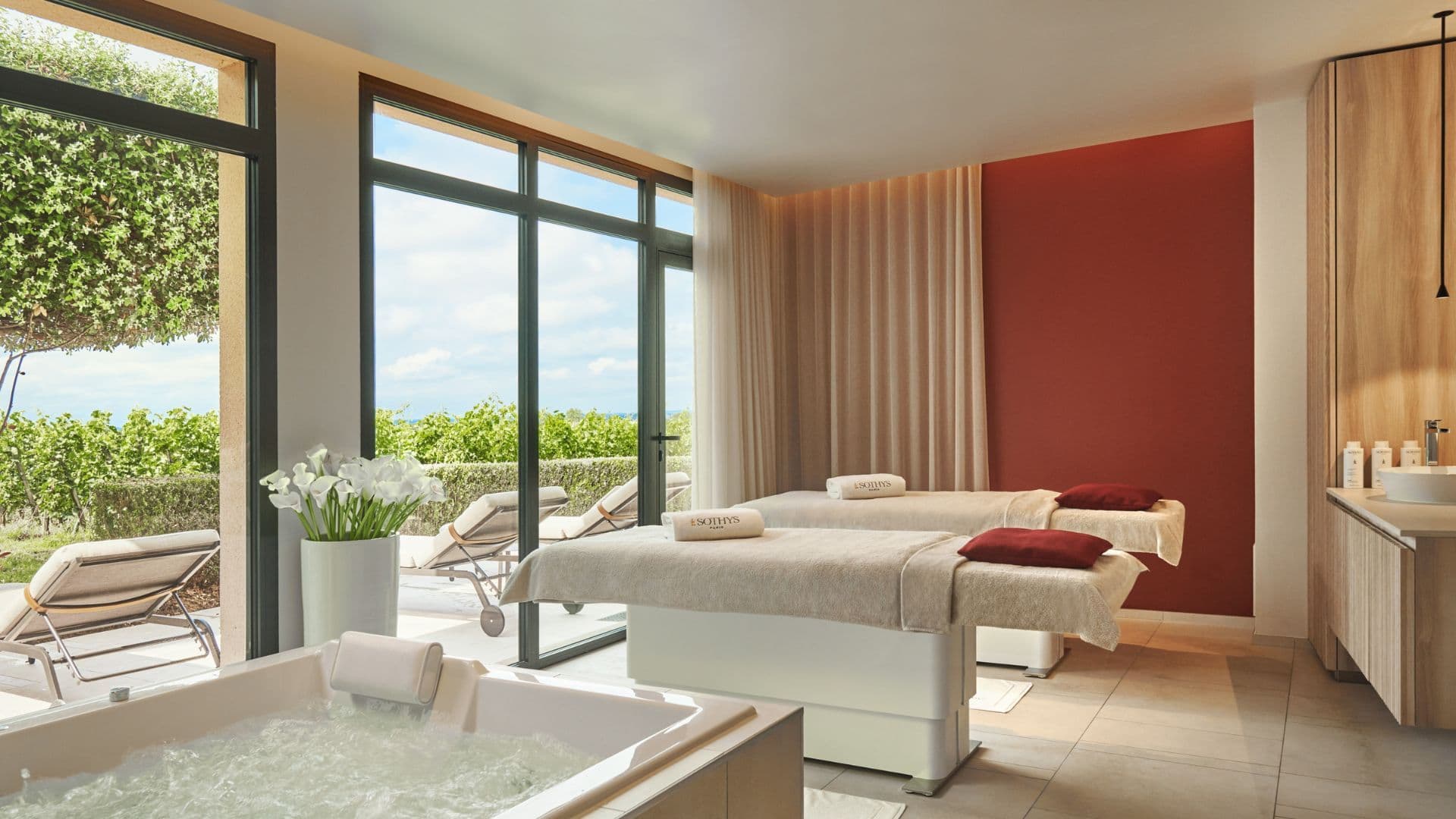 Vous pourrez également profiter du parc, de la piscine extérieure, de la salle de sport et du Spa by SOTHYS qui vous offriront un moment de détente dans un cadre idyllique.