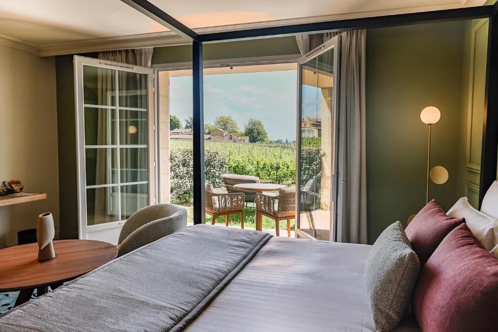 Séjournez au cœur des vignes du célèbre vignoble de Saint-Emilion. Cet hôtel 5 étoiles propose des chambres somptueuses réparties dans le château et ses dépendances. Son restaurant dispose d’une carte bistronomique au déjeuner et gastronomique au dîner, accompagnés d’une sélection exceptionnelle de vins. En été, profitez du bar à vins et de sa terrasse ombragée.